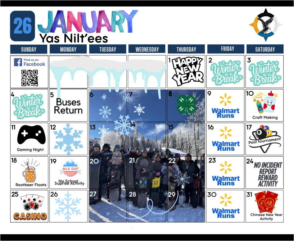 Disclaimer: The following Activity Calendar is provided for reference only. While the Richfield Residential hall staff, administration, and governing board make every effort to ensure that wholesome and fun activities are planned and carried out on a regular basis, this does not constitute a binding document. As many of the activities included herein are subject to a variety of external factors, this calendar should be viewed as a tentative document that is subject to change. Activities may be added, deleted, substituted, or changed as circumstances (availability, funding, weather, etc.) dictate.